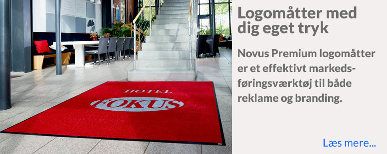 Med Novus Premium logomåtter får du markedets absolutte topkvalitet med 7-8 mm 100% gennemfarvet luv. Ring eller skriv og fortæl os om din idé, så fortæller vi dig, hvad vi skal bruge af materiale for at lave netop din logomåtte.